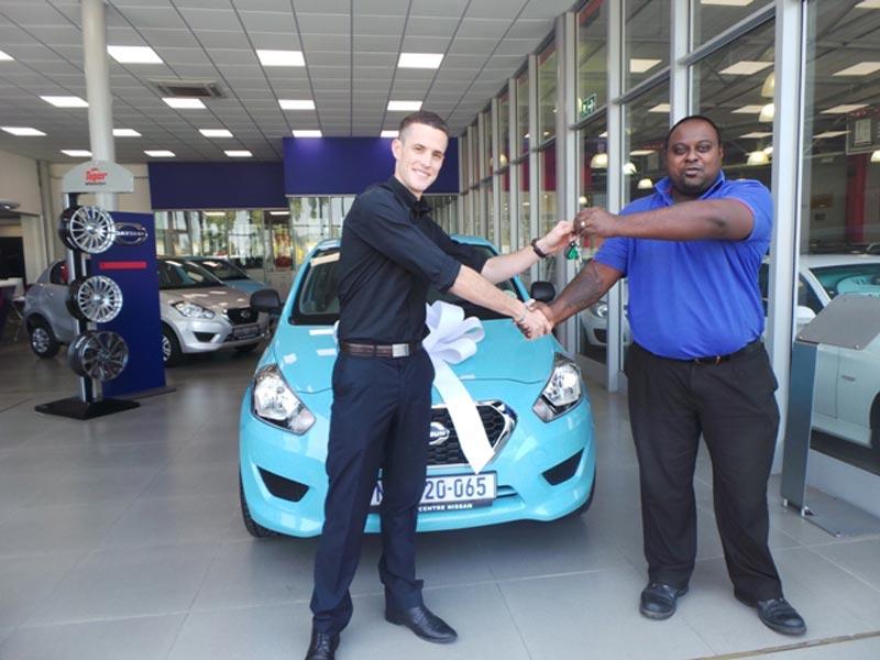 Congratulations to Mr Lind Holmes on taking delivery of his funky New Datsun Go. We love your choice of colour. Vehicle handed over by CMH Nissan Pinetown Sales Excecutive Keshen Canthasamy.
