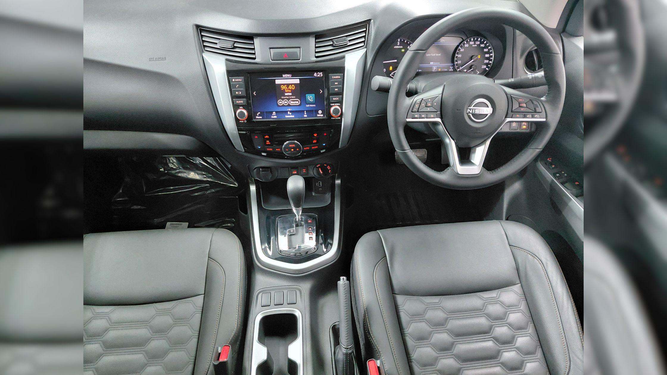 The Navara Stealth’s interior features all-black leather-trimmed seats, armrests, and door panels, which give an elegant, comfortable, and stylish look and feel.